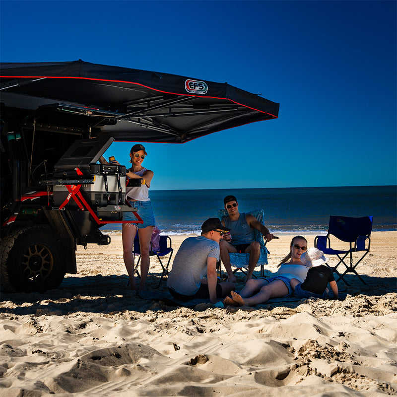 The EFS 180° awning delivers generous coverage in a sleek, compact design. Quick to set up, it offers instant protection from the elements—perfect for quick stops or overnight stays.