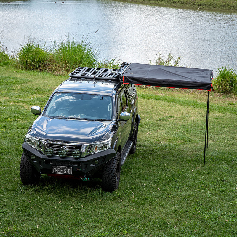The EFS 270° awning offers wide wrap-around coverage, creating a spacious, durable, and easy-to-use outdoor shelter for any adventure.